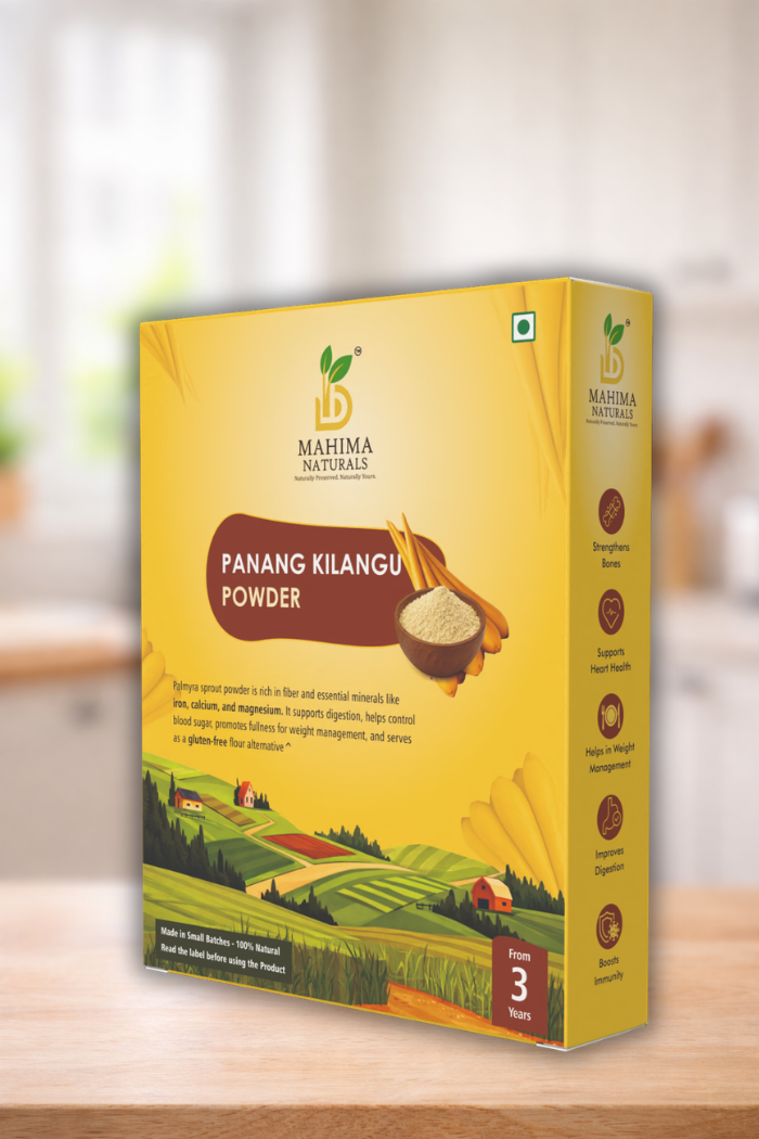 Breakfast Cereals: To make a fiber-rich breakfast cereal using palmyra sprout (panang kilangu) powder, whisk 2–3 tablespoons of the powder into 1 cup of milk or water and cook over medium heat, stirring constantly to prevent lumps. As the mixture thickens into a porridge, stir in rolled oats or toasted muesli to add texture and substance, simmering for 3–4 minutes until the oats are soft. Once cooked, transfer to a bowl and top with palm jaggery, grated coconut, and sliced bananas to complement the sprout’s unique earthy and slightly nutty flavor. This preparation provides a high-fiber, low-glycemic start to your day.