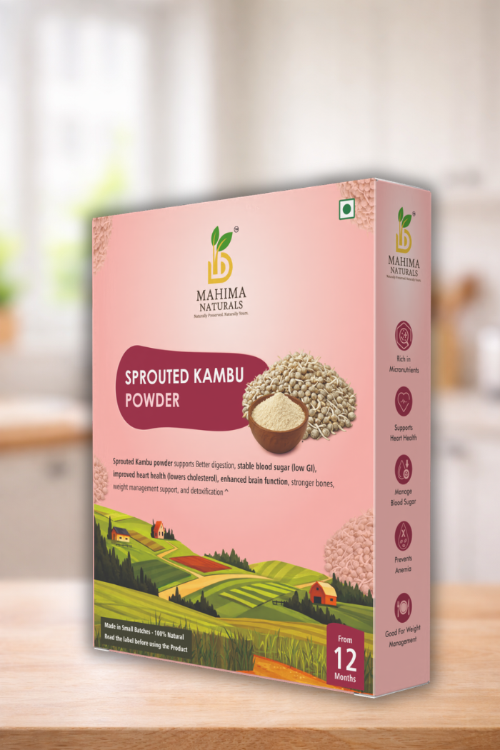 Sprouted Kambu (Pearl Millet) offers enhanced nutrition, easier digestion, and better nutrient absorption due to sprouting, boosting iron, B vitamins, and antioxidants while reducing anti-nutrients. Its benefits include improved gut health, better blood sugar control (low glycemic index), stronger immunity, heart health support (magnesium, potassium), and relief from acidity and body heat, making it excellent for all ages, particularly children, women, and diabetics.